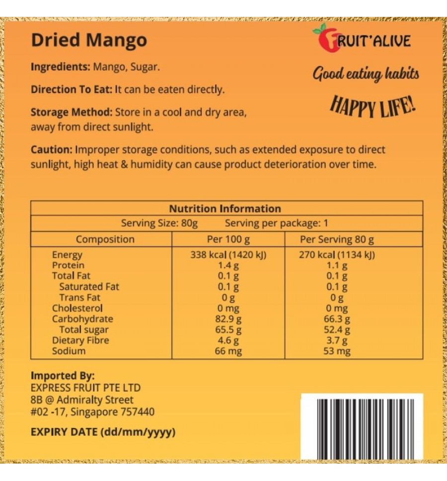 - Product Code: DRIED MANGO FROM PHILLIPINE 80G (FRUIT)